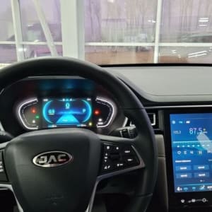 Салон JAC J7 получился современным и стильным. Дизайнеры минимизировали количество функциональных кнопок, отправив все на сенсорный дисплей, а передние сиденья выполнили в спортивном стиле, тем самым сделав посадку ещё комфортней.