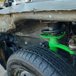 На полном ходу,двигатель идеально работает,ходовая новая-спорт,кондиционер работает,резина новая,вся проклеена! Не гремит не скрипит,очень ухоженная машина