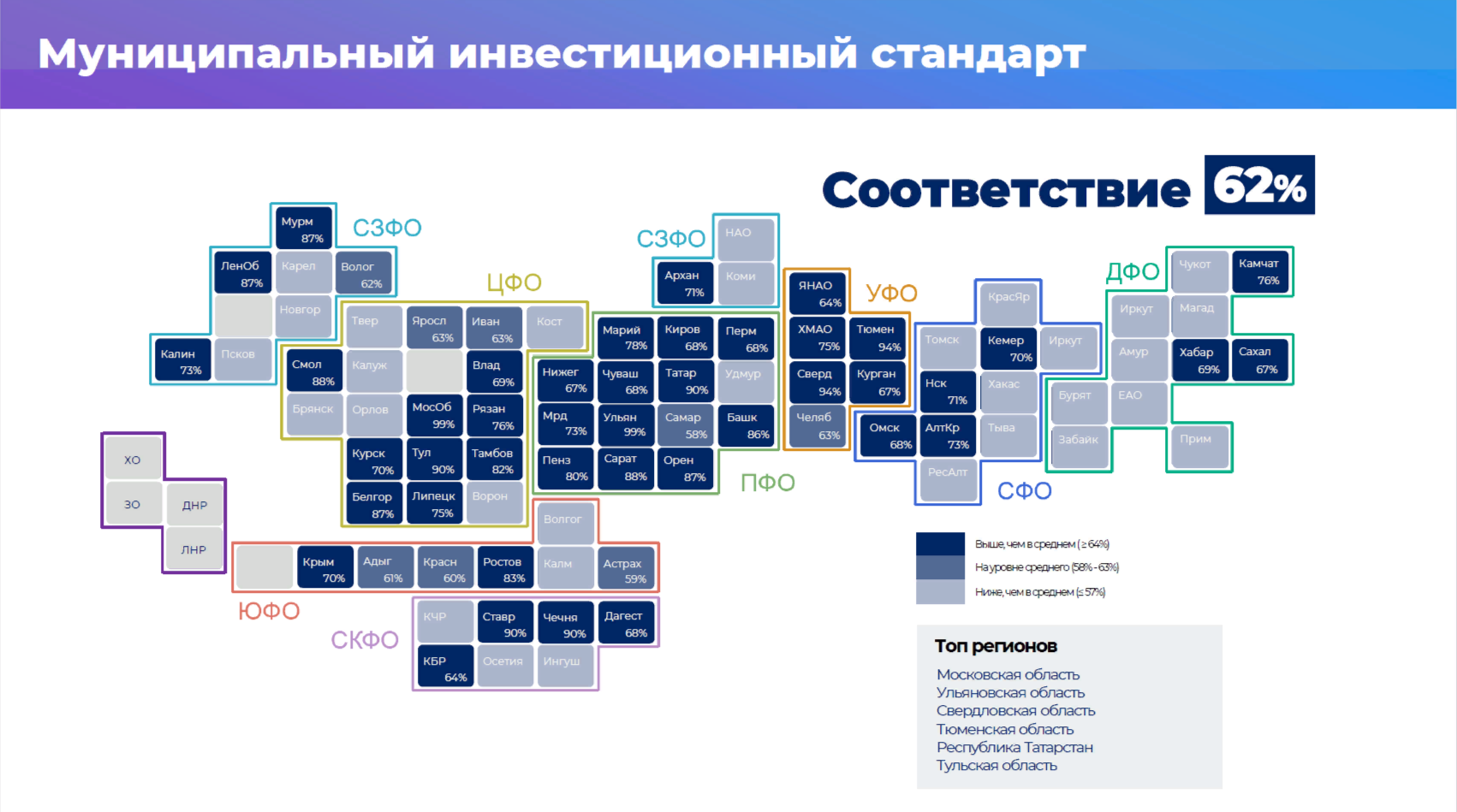 Министерство экономического развития России представило статистику по внедрению в регионах муниципального инвестиционного стандарта.