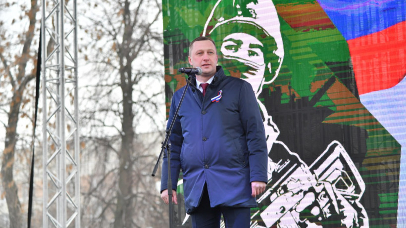 Роман Бусаргин на митинге в поддержку участников СВО. Пресс-служба губернатора Саратовской области