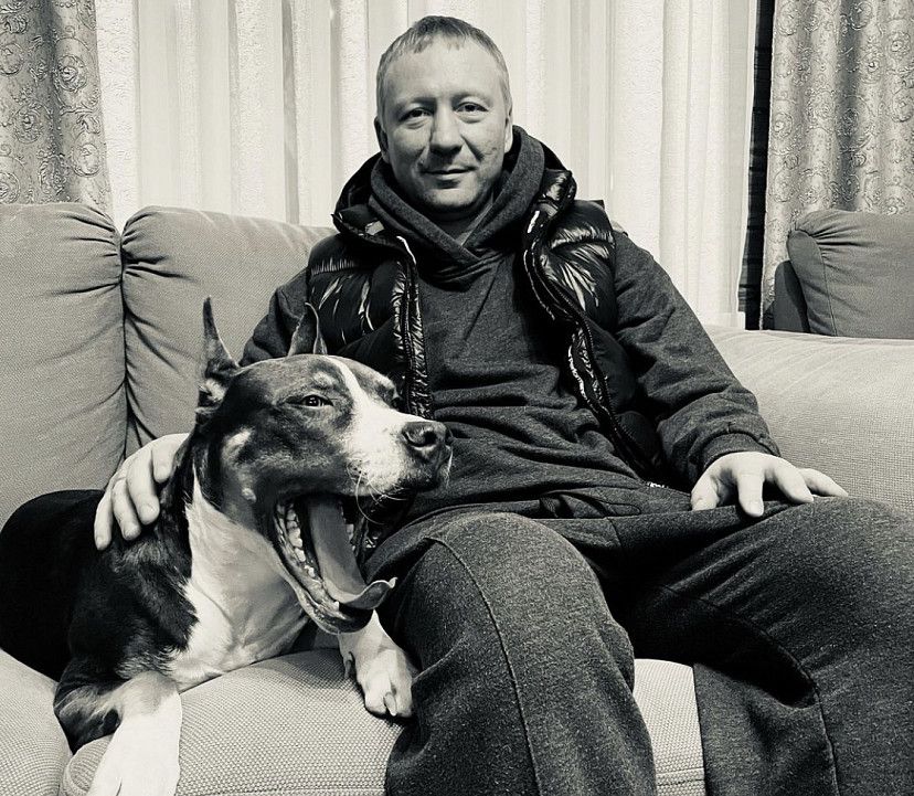 Популярный российский артист из Саратова Дмитрий Куличков поздравил поклонников с Новым годом фотографиями вместе с собакой породы прайтер.