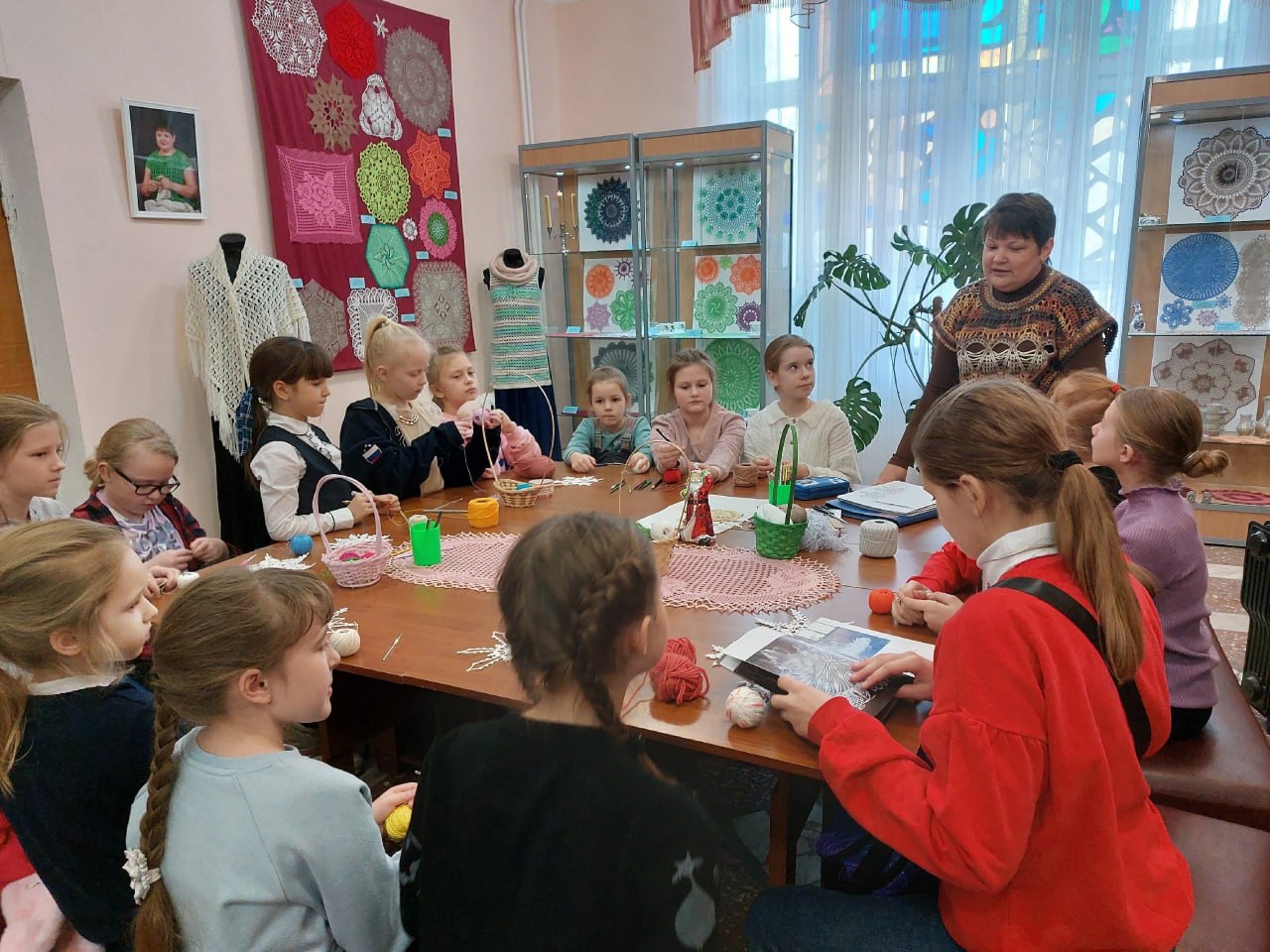 Совсем недавно учащиеся из Центра «Созвездие», посещающие творческое объединение «Волшебство своими руками», вместе с педагогом Еленой Валентиновной Курдюковой стали участниками встречи с балашовской мастерицей Натальей Александровной Новиковой. В настоящее время в Балашовском краеведческом музее экспонируется её персональная выставка интерьерных салфеток, связанных крючком, «Клубок мастерицы». Девочки познакомились с уникальными тончайшими кружевными изделиями, узнали, как по толщине нити правильно подобрать нужный крючок и как его держать во время вязания. В рамках краеведческой встречи девочки получили первые навыки работы с крючком, а кто-то даже успел связать небольшие изделия.