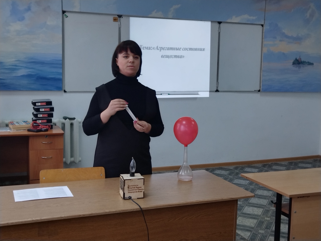 Кристина Сергеевна провела открытый урок на тему "Агрегатные состояния вещества". Ребята работали в группах, проводили эксперименты; для контроля усвоения знаний использовалась современная методика "Пликерс".