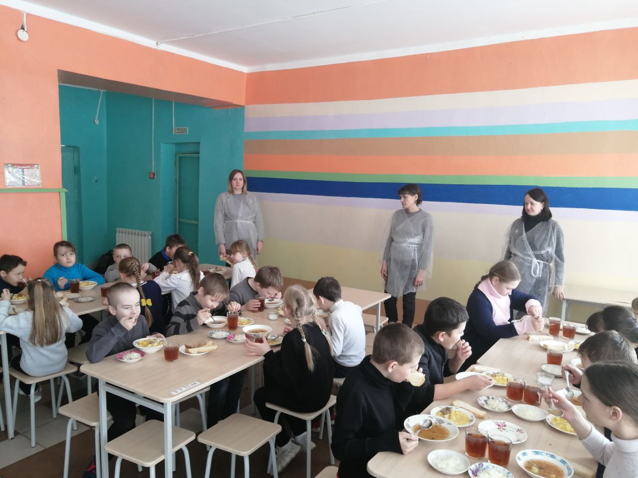 17.02.2023 представители родительского контроля 3 и 4 классов, изучили режим работы столовой, условия обучающимися правил личной гигиены, санитарно-техническое состояние обеденного зала, культура обслуживания, оценка готовых блюд.