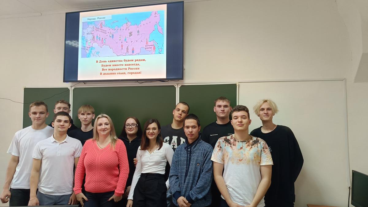 В связи с этим 03 ноября 2023 года куратором групп БАИ-103, БАИ-104 профиля подготовки «Электрооборудование и электротехнологии» доцентом кафедры «Электрооборудование, энергоснабжение и роботизация» О.В. Логачёвой был проведен кураторский час на тему «День народного единства». Куратор напомнила обучающимся историю празднования Дня народного единства. В беседе студенты отметили значимость данного праздника и пришли к выводу, что День народного единства - это день героизма и мужества многонационального народа России.