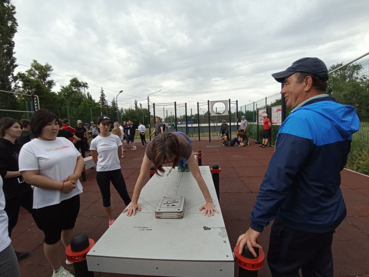Судьи центра тестирования (учителя физкультуры школ), каждый по своему направлению, принимает нормативы.