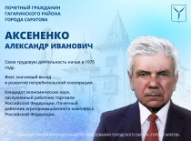 Почетный гражданин города Саратов, Александр Иванович Аксененко, по праву заслуживает уважения и признания. Его жизнь и работа служат вдохновением для многих, и этот день напоминает всем о важности участия каждого в жизни своего региона.