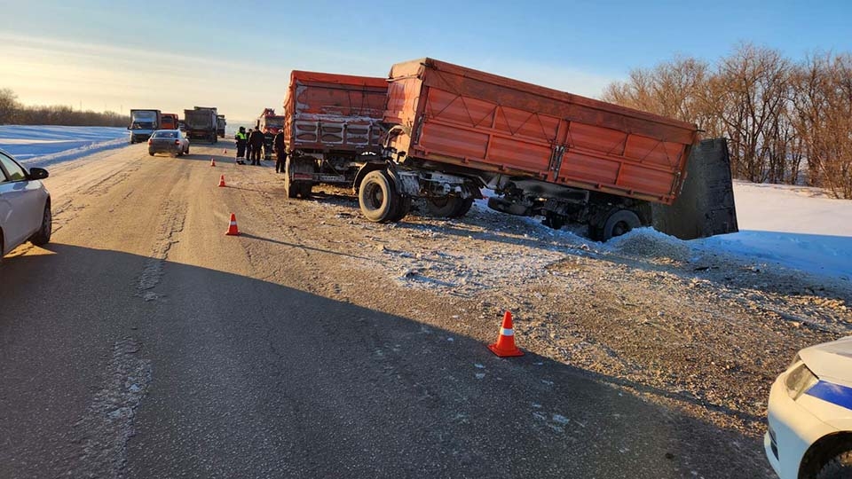 Большегрузы не уместились на саратовской трассе. Оба водителя в больнице