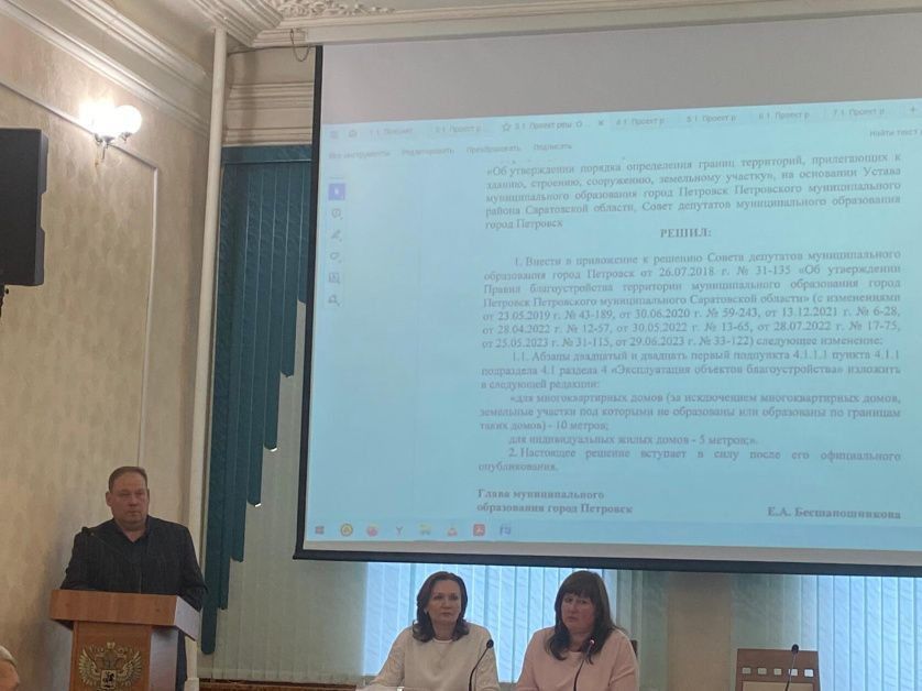 Далее участники заседания внесли изменения в решение №36-151 от 29.11.2018 года «Об утверждении Положения о предоставлении иных межбюджетных трансфертов и методики расчёта иных межбюджетных трансфертов, предоставляемых из бюджета МО город Петровск» и в решение №40-121 от 13.12.2013 года «О создании муниципального дорожного фонда МО город Петровск», а также обсудили проект, которым планировалось изменить решение №31-135 от 26.07.2018 года «Об утверждении Правил благоустройства территории МО город Петровск», однако его корректировку не утвердили.
