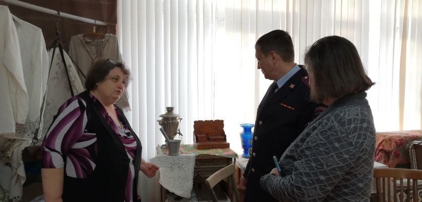 Музей «Петровский патриот» при Детско-юношеском центре г.Петровска посетили начальник службы участковых уполномоченных полиции подполковник полиции Станислав Скосырский и инспектор направления по связям со СМИ ОМВД Татьяна Дементьева.
