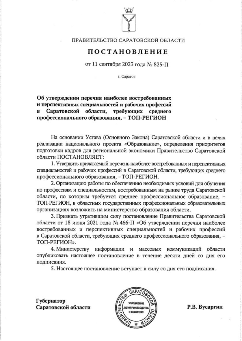 В список вошла 51 профессия, каждая из которых преподается в учреждениях СПО региона. Данный перечень определяет приоритеты подготовки кадров по современным стандартам для экономики и соцсферы Саратовской области. Это профессии для промышленности, строительства, сельского хозяйства, транспорта, здравоохранения, образования, других отраслей.