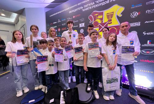 Участники народного коллектива студии ударных инструментов «Пересвет» РДК, воспитанники детской школы искусств, руководитель и преподаватель Алексей Мануйлов, отмечают очередную победу.