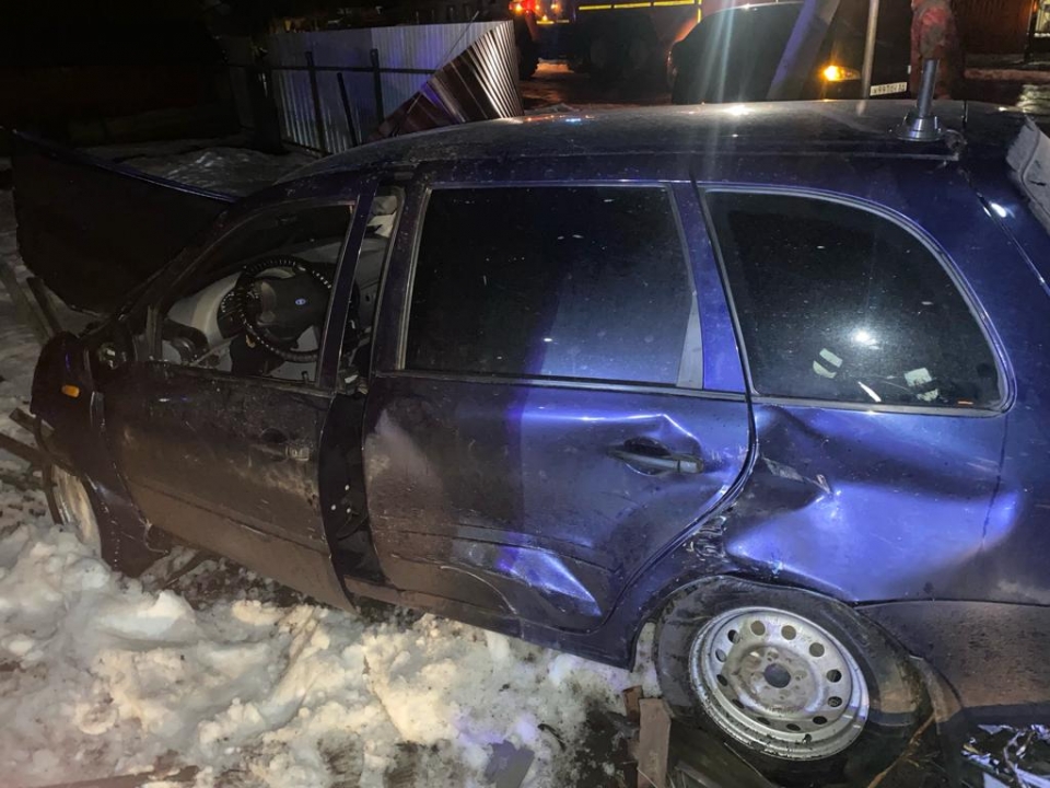 От удара отечественное авто изменило траекторию движения и протаранило забор.