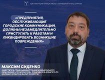 Максим Сиденко: «Предприятия, обслуживающие городские коммуникации, должны незамедлительно приступать к работам и ликвидировать возникшие повреждения»