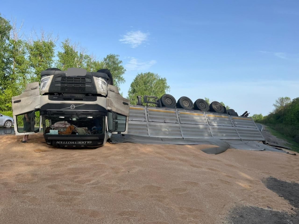 По предварительным данным, в 17.20 на 551-м км автодороги Р-22 "Каспий" вблизи села Барки 47-летний водитель грузового автомобиля "Вольво" допустил опрокидывание транспортного средства, в кузове которого был песок.