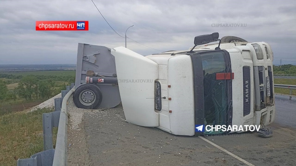 На трассе в Саратове перевернулся грузовик с щебнем. Есть пострадавшие