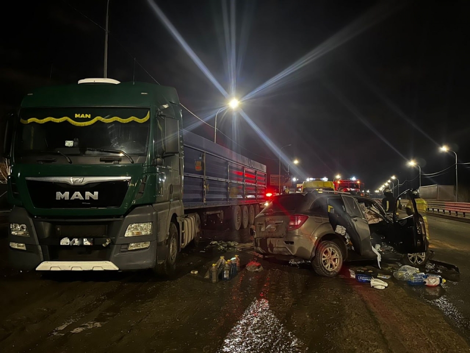 На въезде в Саратов иномарка протаранила большегруз. Два человека в больнице