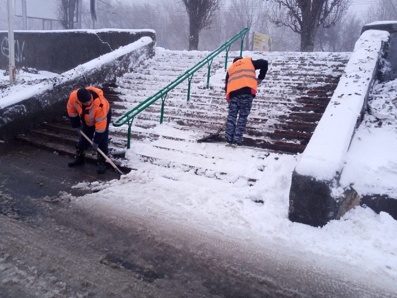 Работы по очистке и обработке противогололедными материалами пешеходных лестниц выполнены в Ленинском районе по улицам Гвардейская, Ламповая, 2-я Прокатная и другим.