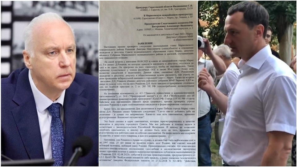 Общественность Маркса просит главу СК РФ проверить публичные заявления Дмитрия Романова
