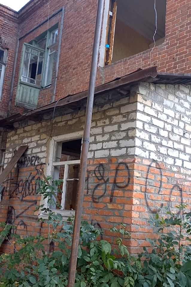 " У него разбиты окна, нет крыши. Этот объект представляет опасность для людей, он может в любой момент рухнуть. По непонятной причине данное строение совершенно не огорожено! Мимо него ходят люди, ездят машины, поскольку он находится рядом с дорогой.