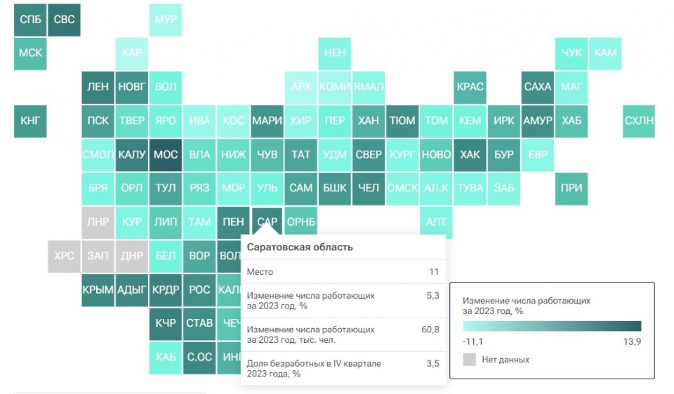 По итогам 2023 года Саратовская область укрепилась в рейтинге регионов по динамике работающего населения.