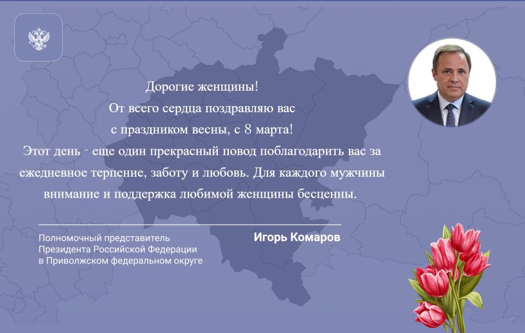 Полномочный представитель Президента РФ в ПФО поздравил женщин с 8 марта