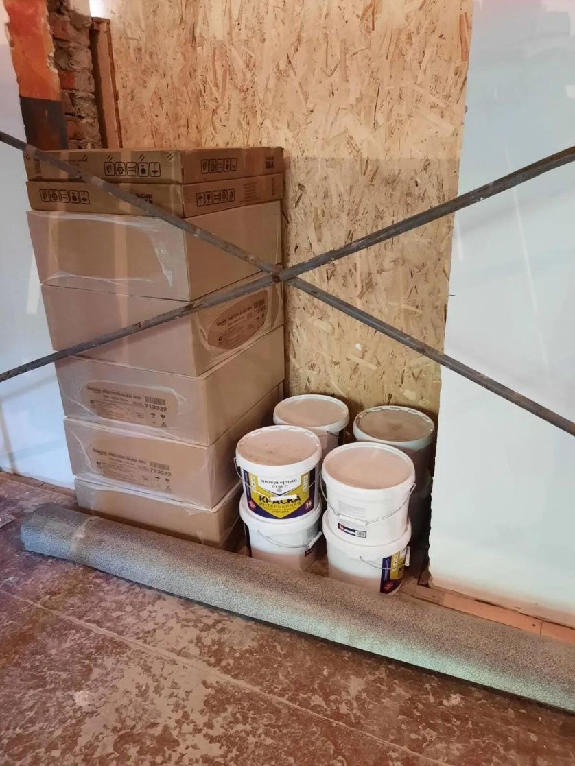 Завтра планируется доставка пластиковых дверей и их монтаж, сборка потолка, окон.