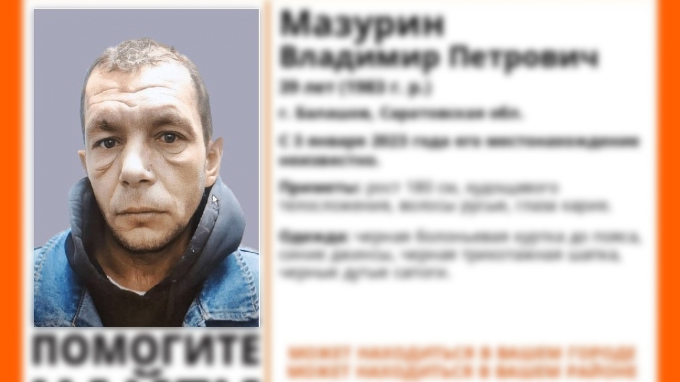 В Балашове прекращены поиски 39-летнего Владимира Мазурина . Об этом сообщает поисковый отряд "Лиза Алерт Саратов".