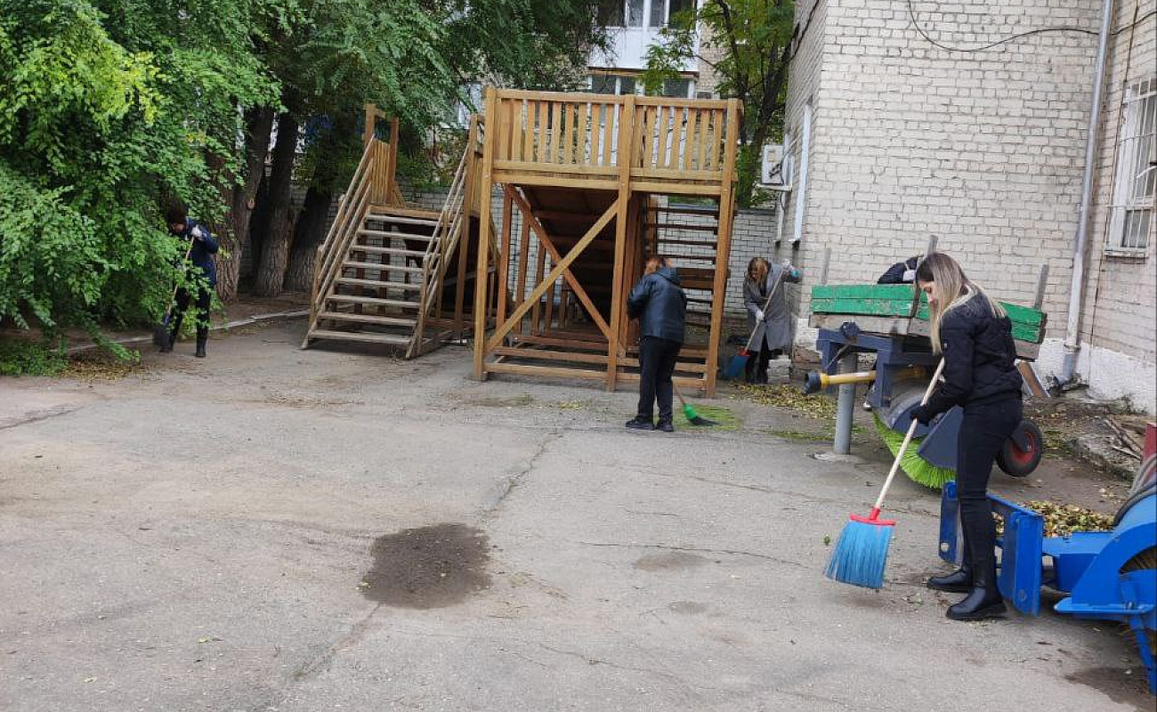 На территории посёлка и района продолжается осенний месячник по благоустройству. Сегодня, сотрудники и ребята различных учреждений вышли на улицу и привели в порядок прилегающие территории.