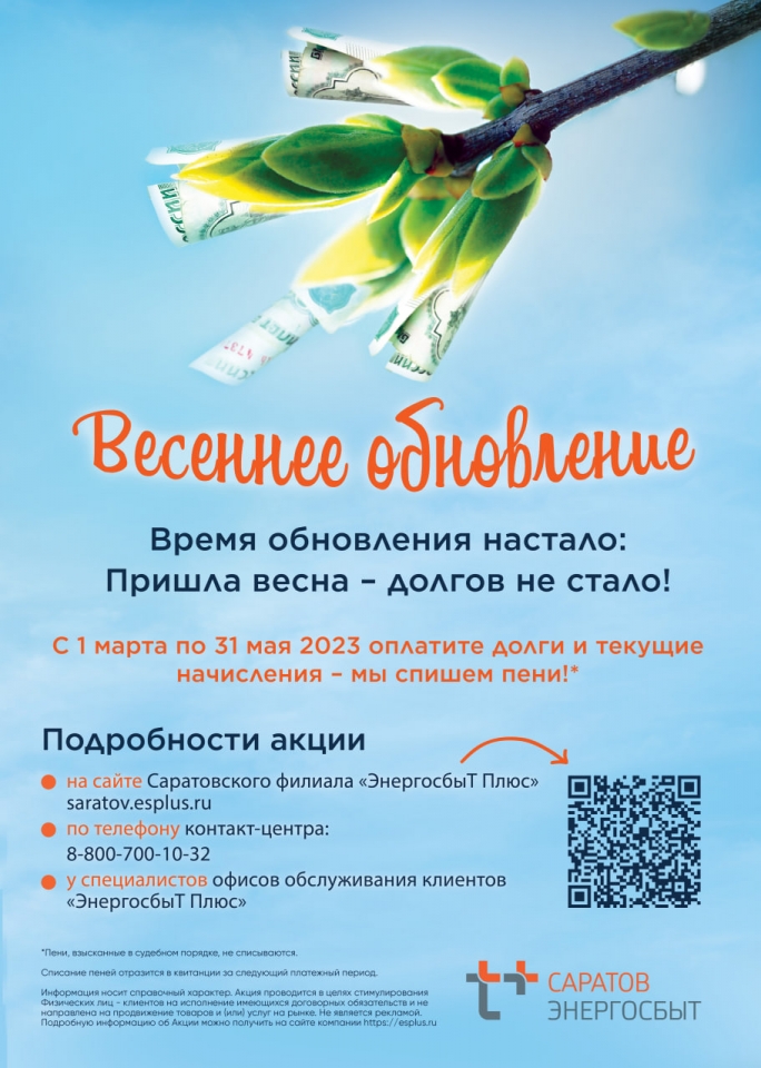 Саратовский филиал "ЭнергосбыТ Плюс" объявляет о начале акции "Весеннее обновление".