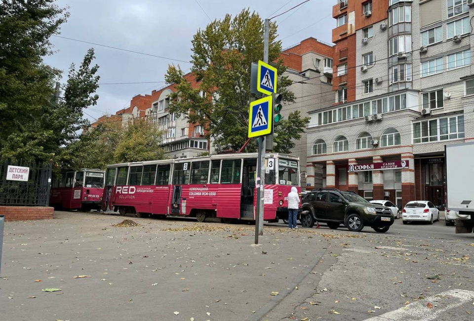 " Сегодня, 7 октября, в 12.27 на пересечении улиц Советской и Пугачева по вине водителя легкового автомобиля "Рено" произошло столкновение с трамваем 3-го маршрута.