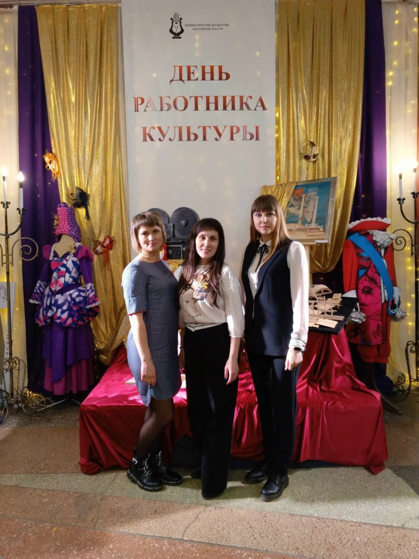 Делегация из Петровского района в составе начальника управления культуры и кино Петровского района Анны Потаповой, оператора видеозаписи МУК "ЦКС Петровского района" Елены Борисовой, методиста детско-юношеской библиотеки МУК "ЦБС Петровского района" Александры Филимоновой приняли участие в областном мероприятии, посвящённом Дню работника культуры.