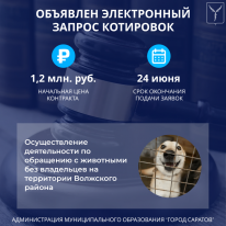 Размещен запрос котировок в электронный форме на оказание услуг по осуществлению деятельности по обращению с животными без владельцев на территории Волжского района муниципального образования «Город Саратов».