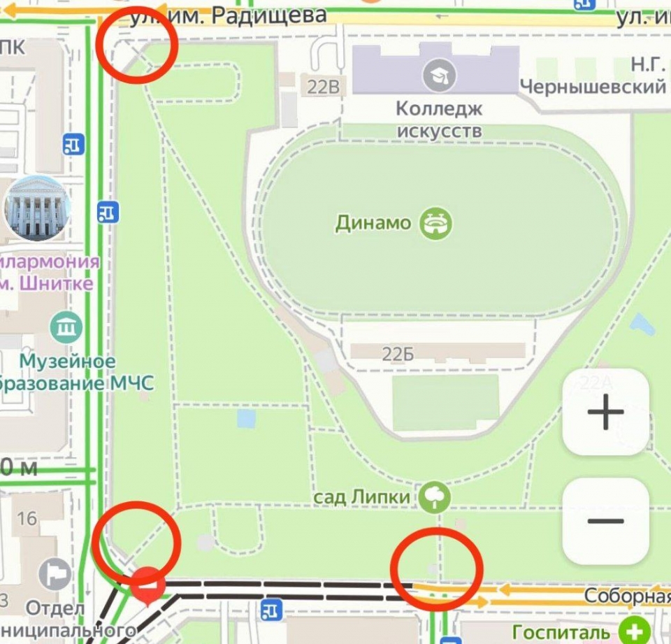 - Соборная площадь / улица Радищева.