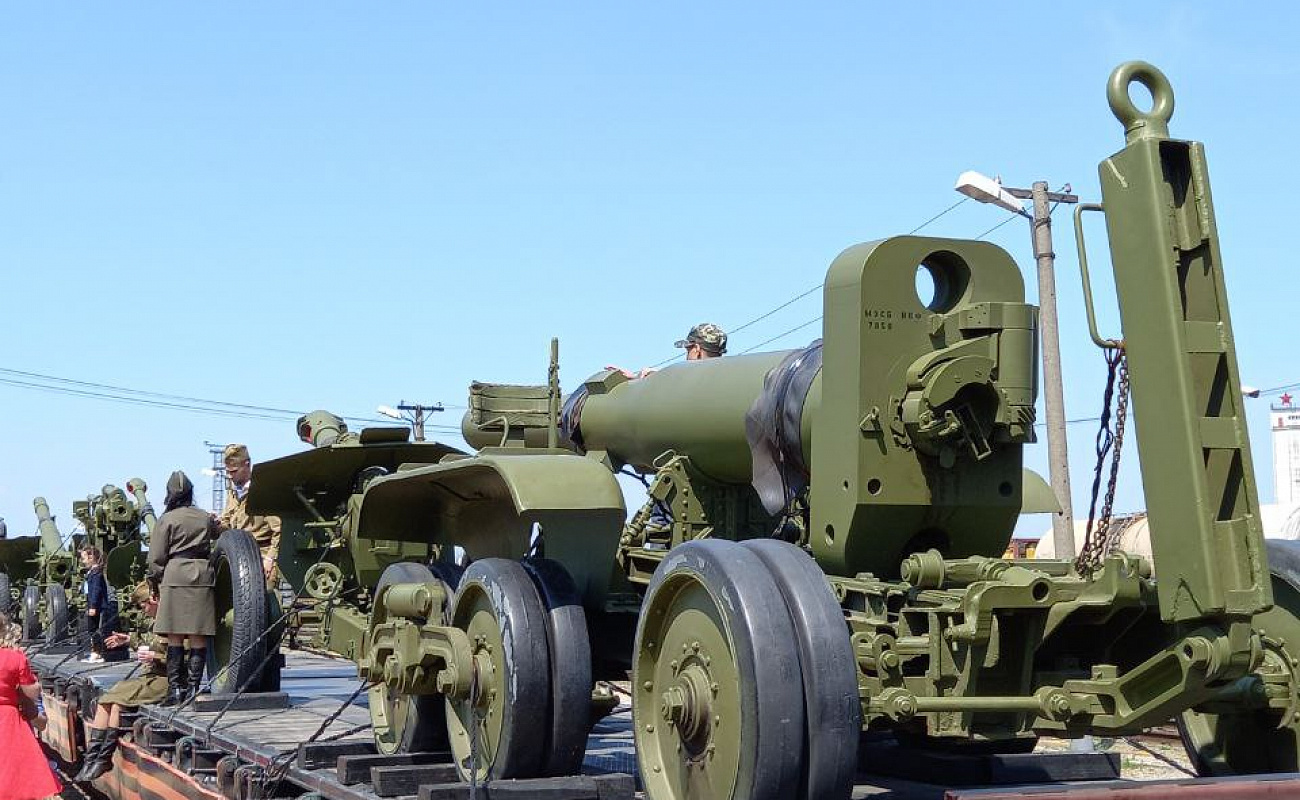 Сегодня в честь празднования 80-летия Сталинградской битвы на станцию Урбах прибыл ретропоезд «Воинский эшелон», сформированный из 2-х действующих паровозов и 6 железнодорожных платформ с техникой,