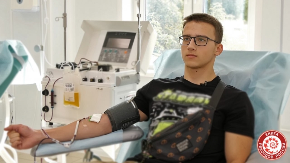 "Михаил Трусаков стал Почетным донором России в возрасте 20 лет 5 месяцев и 28 дней, сдав нужное количество компонентов крови: всего сдал 40 раз (пять донаций крови, 20 - тромбоциты, 15 - плазма).