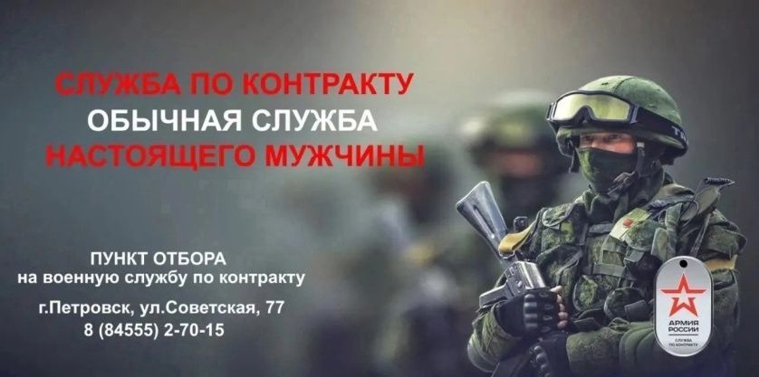 По вопросам поступления и прохождения военной службы по контракту можно обратиться по адресу: г. Петровск, ул. Советская,77 тел. 8 (84555)2-70-15