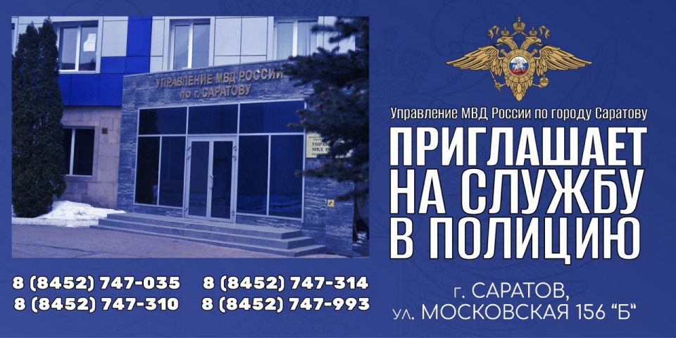 Желающие могут обращаться по телефонам: 8 (8452) 747076, 8 (8452) 747310, 8 (8452) 747006 (отдел по работе с личным составом управления МВД по Саратову).