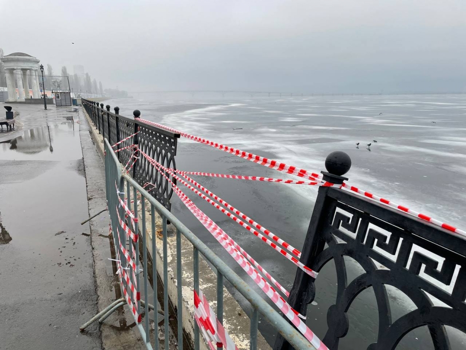 Речь идет об участке набережной между улицами Вольская и Провиантская, где в начале января был разрушен один из пролетов забора. Для безопасности прохожих там замотали пустующее место сигнальной лентой.
