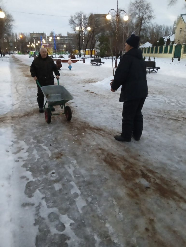 Утром сотрудники «Комбината благоустройства» приступили к очистке и посыпке песко-соляной смесью пешеходных переходов, остановочных павильонов. Посыпка песко-соляной смесью производится как ручным, так и механизированным способом. На данный момент выполняются работы по посыпке тротуаров и пешеходных дорожках на Гагарина, Коммунистической, 1 мая и Ленина, также в скверах Олимп, Бализ, Мечта, около кинотеатра «Россия», в парках Энергетик, Детский и Центральный, в сквере у ДЮСШ и Аллее Героев, на мысе Ерошкина и Мосту Победы.