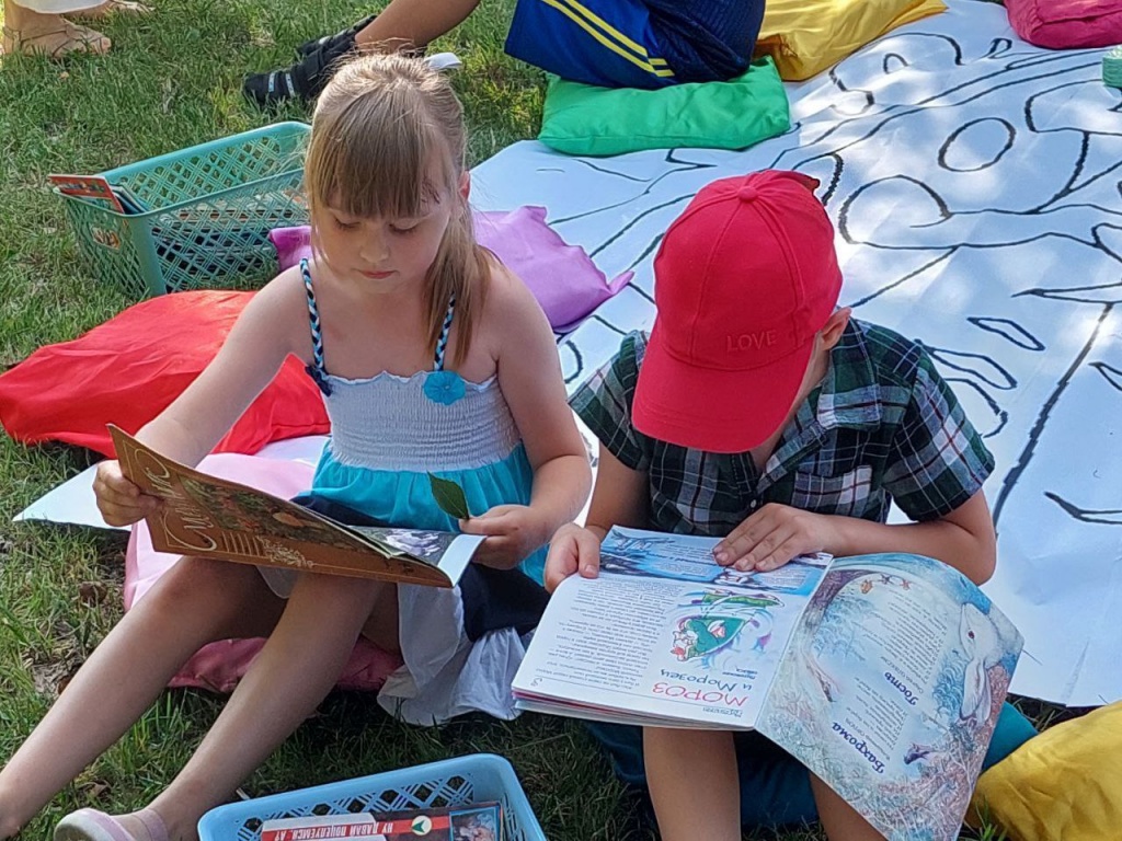На площадке работали летний читальный зал для детей и мастер-классы. Ребята совершили путешествие по страницам книг, создали яркое и красочное панно из цветной бумаги,