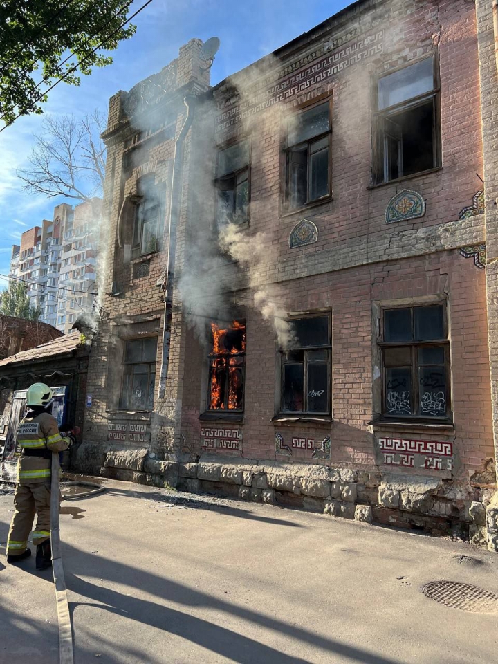 Час назад во Фрунзенском районе Саратова возник пожар в постройке начала прошлого века.