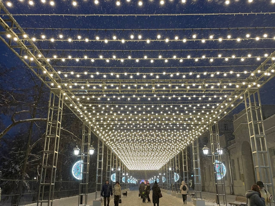 Вчера на пешеходной Волжской в Саратове начала работать сборно-разборная инсталляция , установленная в преддверии Нового года.