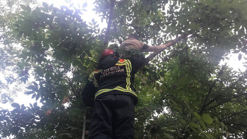 Прибывшие на место спасатели при помощи лестницы спустили 10-летнего мальчика с дерева. Он не пострадал.