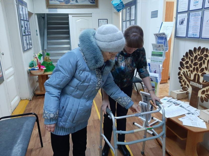 Сотрудник КЦСОН рассказала о видах и правильном использовании технических средств реабилитации, которые могут помочь пожилому человеку в быту и для облегчения передвижения. Подобрав нужное техническое средство была оформлена выдача.