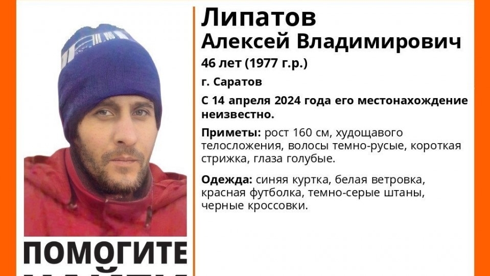 В Саратове прекращены поиски 46-летнего Алексея Липатова . Об этом сообщает поисковый отряд "Лиза Алерт Саратов".
