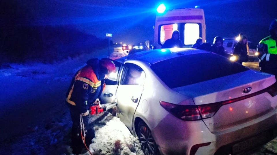 В 17.40 в службу "112" поступил звонок об аварии вблизи села Безымянное (трасса на Казахстан). Столкнулись Hyundai и Kia.