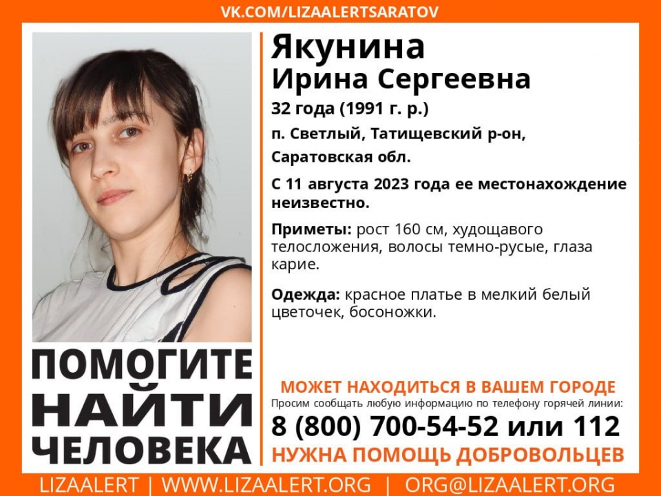 32-летняя Ирина Якунина пропала вчера, 11 августа.