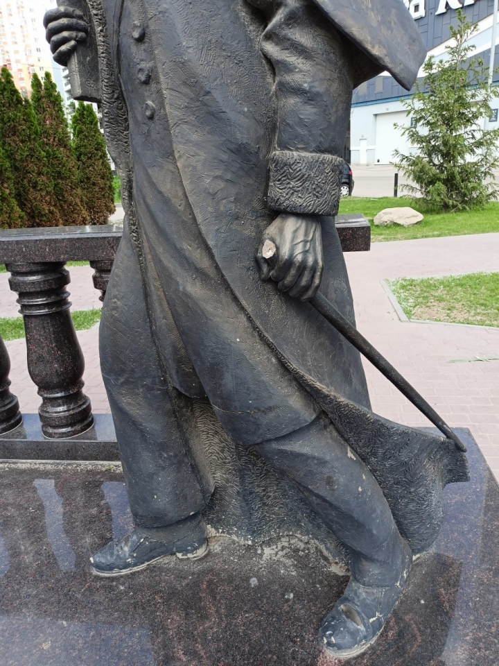 Судя по фото очевидца, теперь у памятника отсутствует часть трости.