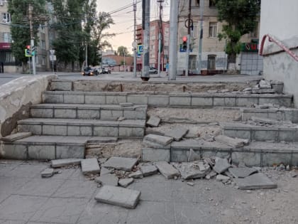 "Тротуара просто нет". В Саратове по дороге к новой набережной разрушилась лестница